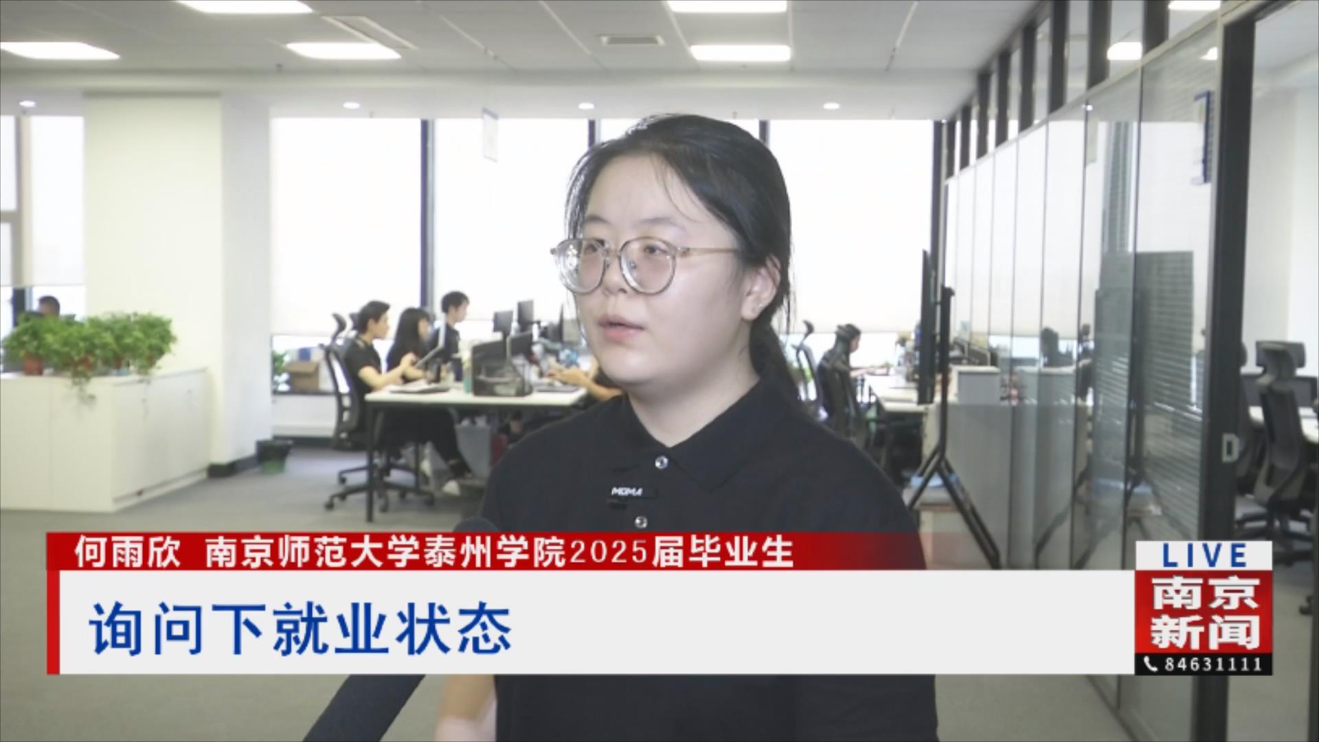 南京師范大學(xué)泰州學(xué)院2025屆畢業(yè)生何雨欣對記者說道:“對方詢問了一下我的就業(yè)狀態(tài),也問了我本人想從事什么行業(yè)的工作。”
