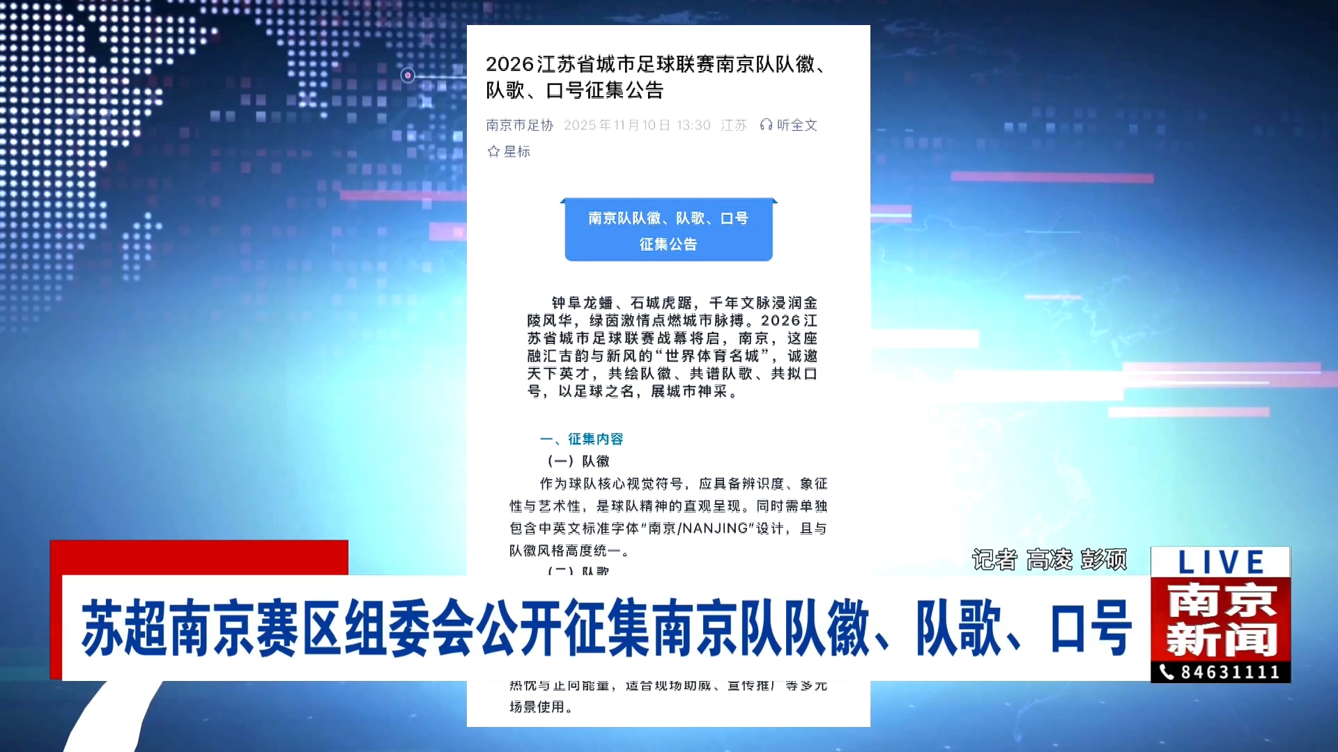 蘇超南京賽區(qū)組委會(huì)公開(kāi)征集南京隊(duì)隊(duì)徽...